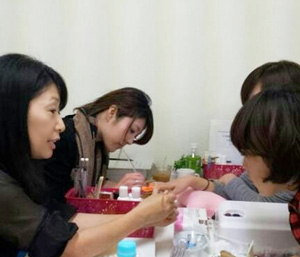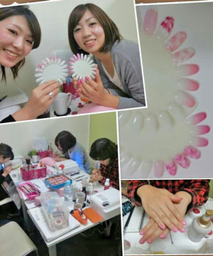 2013年8月21日 から chainon オーガニックジェルネイル養成講座2日目のスクールでは、グラデーションやマーブルやピーコック等を学びます。二人とも2日目とは思えないほどの出来映え(^o^)/ 皆さんの笑顔も素敵です。 ※グラデーションとは爪の先端から根元にかけて、色を薄くしていくデザインのこと。 ※マーブルとは2色のネイルカラーを混ぜ合わせてデザインすること。 ※ピーコックとは多色使用し、クジャクの羽のような柄を作るデザインのこと。 お申し込みは下記より。